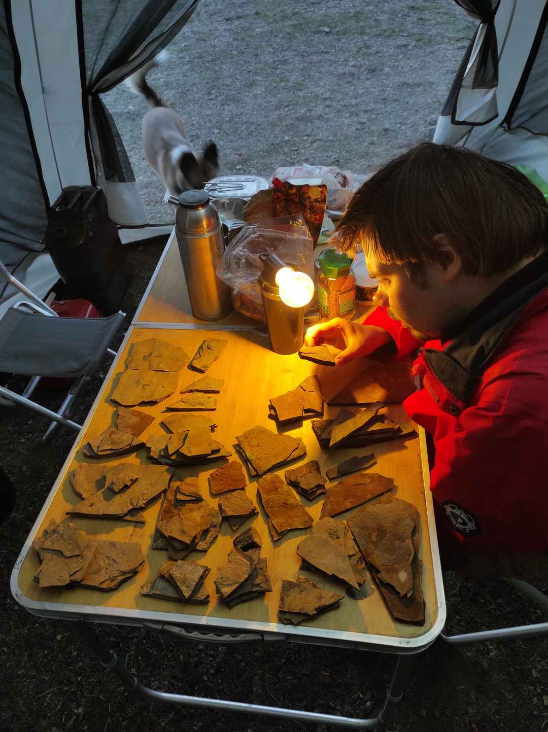 Экспедицияны маусым соңында, қазан айының басында ғана ұйымдастыру мүмкін болды. Ауа райы сәтті болды: жаңбыр мен қар жаумады, күндіз +10°С шамасында, түнде аяз. Таңертең рукомойниктегі мұзды сындырып, күнді бастадық. Лагерь қазба орнынан бар болғаны 20 метр жерде тұрды: шатырлар, қойма, ас үй, демалыс және зертхана – бәрі бір шатыр астында. Күндізгі уақыт толық қазба жұмыстарына арналды. Қазан айында күн ерте бататындықтан, кештер далалық материалдарды өлшеу мен қаптауға арналды.
